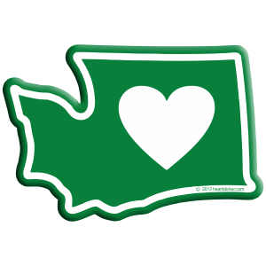 Heart in Washington Magnet. Green state for the Evergreen state and white for the glaciers of the Cascade range. We have added sparkle to the green for Seattle nickname Emerald City.